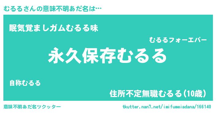 | 男性向けラノベタイトル風あだ名 | 『むるるという概念が存在しない退屈な世界 』 |