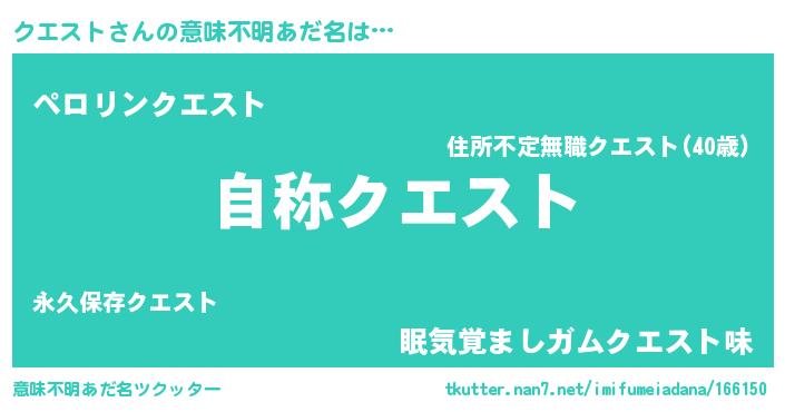 ヘコむあだ名 | 『クエにゅー』『クエスト(笑)』 |