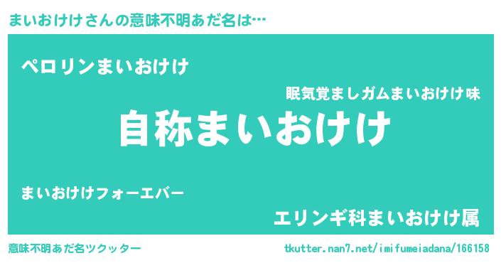| 男性向けラノベタイトル風あだ名 | 『Re:まいおけけから始める異世界生活』 |