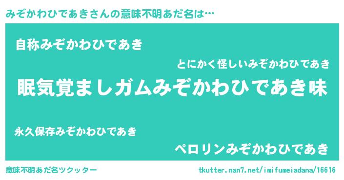 | ピコ太郎風あだ名 | 『ミミ太郎』『ミコ次郎』『ミゾ一郎』 |