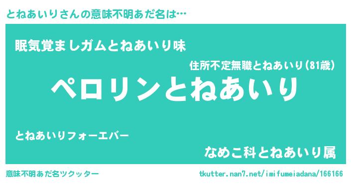 | 胡散臭い通販商品みたいなあだ名 | 『モテモテ間違いなし水晶球…その名も「とねあいり」』 |