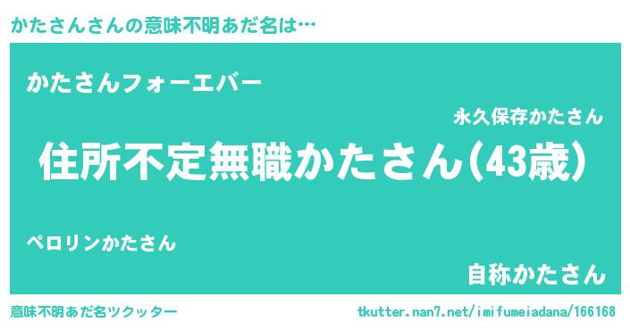 | ヒーロー風カッコイイあだ名 | 『仮面カタダー』『ウルトラかたさんマン』 |