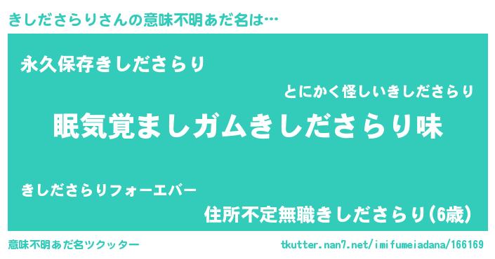 | 男性向けラノベタイトル風あだ名 | 『おまえをオタクにしてやるから、俺をきしださらりにしてくれ! 』 |