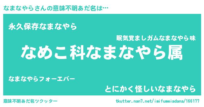 | ヘコむあだ名 | 『なまなやら(笑)』『なま太郎』 |