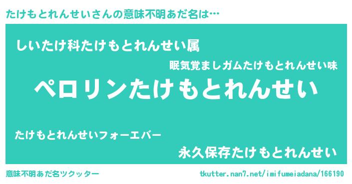 | 胡散臭い通販商品みたいなあだ名 | 『必ず成功するブレスレット…その名も「たけもとれんせい」』 |