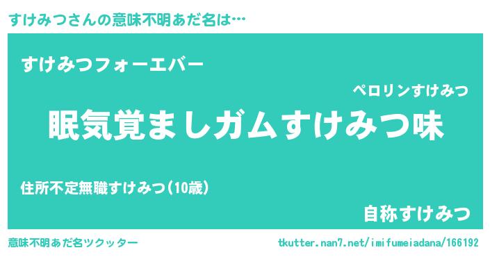 | 男性向けラノベタイトル風あだ名 | 『うちのすけみつが世界を掌握している!』 |