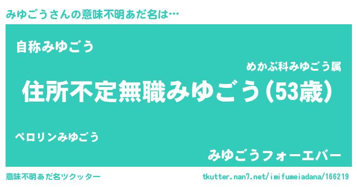 | 男性向けラノベタイトル風あだ名 | 『この素晴らしい世界にみゆごうを!』 |