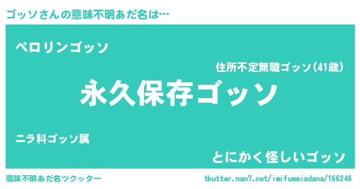 | 胡散臭い通販商品みたいなあだ名 | 『前代未聞の健康食品…その名も「ゴッソ」』 |