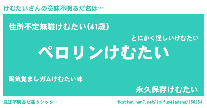 | 男性向けラノベタイトル風あだ名 | 『けむたいの憂鬱』『魔弾の王とけむたい』 |