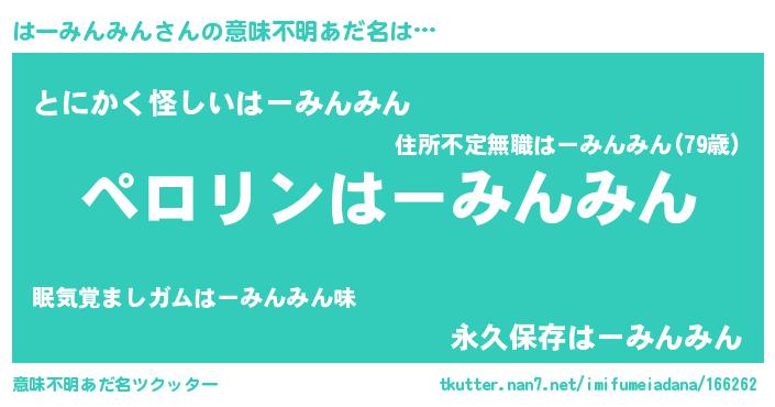| 胡散臭い通販商品みたいなあだ名 | 『億万長者になれる霊験あらたかなお札…その名も「はーみんみん」』 |
