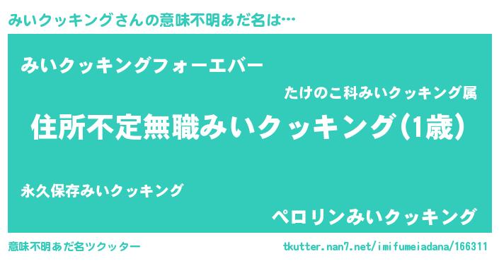 | 胡散臭い通販商品みたいなあだ名 | 『世界中を虜にした100年もののヴィンテージワイン…その名も「みいクッキング」』 |