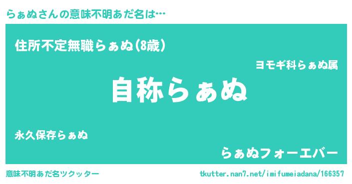 | ヘコむあだ名 | 『豆乳』『らぁぬ(笑)』『らぁお』 |