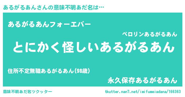 | 男性向けラノベタイトル風あだ名 | 『ダンジョンにあるがるあんを求めるのは間違っているだろうか』 |