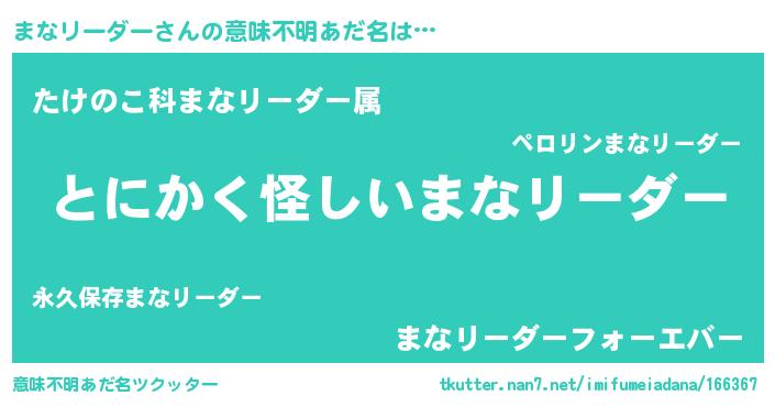 | 胡散臭い通販商品みたいなあだ名 | 『信頼と実績のネックレス…その名も「まなリーダー」』 |