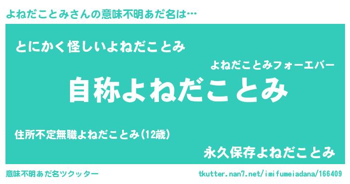| 男性向けラノベタイトル風あだ名 | 『よねだことみに滅ぼされるだけの簡単なお仕事です』 |