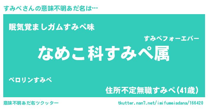 | 男性向けラノベタイトル風あだ名 | 『転生したらすみぺだった件』 |