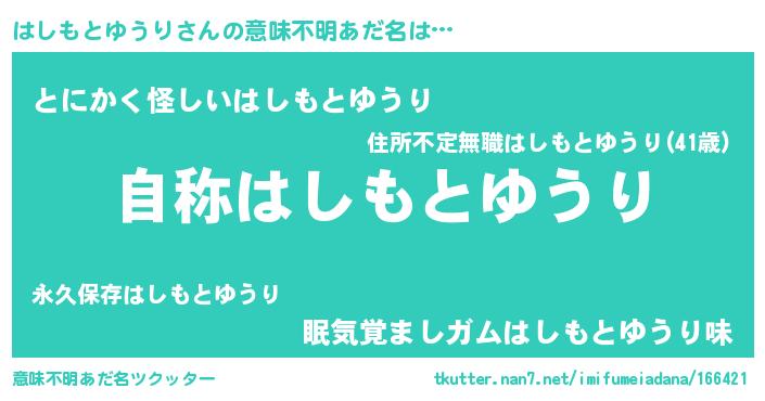 | 肩書あだ名 | 『はしもとゆうり閣下』 |