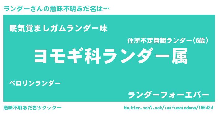 | 男性向けラノベタイトル風あだ名 | 『うちのランダーが世界を掌握している!』 |