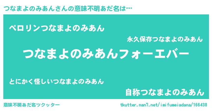 | 肩書あだ名 | 『つなまよのみあん国家主席』 |