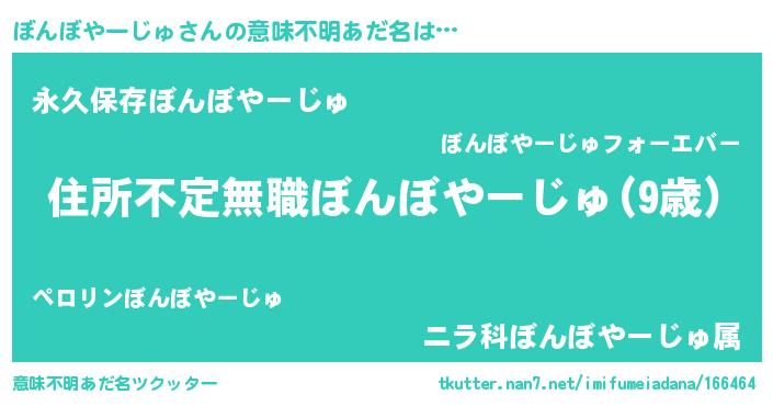 | ヘコむあだ名 | 『ぼんぼやーじゅ(笑)』『酢こんぶ』 |