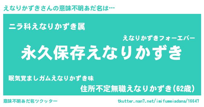 | ヒーロー風カッコイイあだ名 | 『ネオエナリカズキ』『仮面エナダー』 |