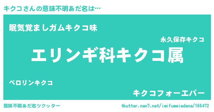 | 男性向けラノベタイトル風あだ名 | 『キクコスレイヤー』 |