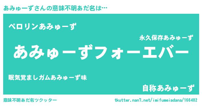 | 男性向けラノベタイトル風あだ名 | 『緋弾のアミューズ』『あみゅーずの憂鬱』 |
