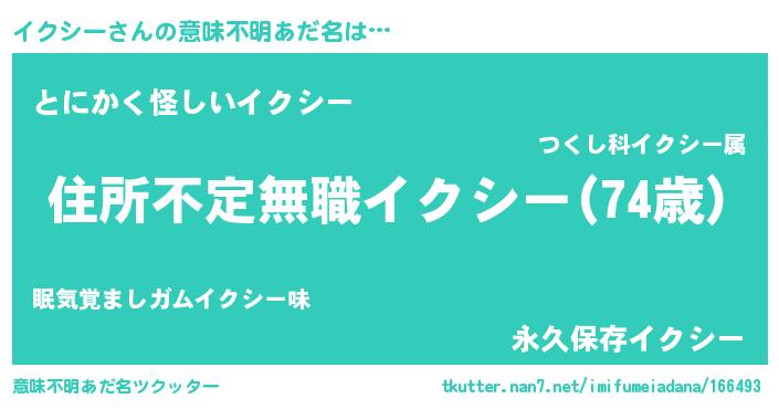 | 男性向けラノベタイトル風あだ名 | 『この素晴らしい世界にイクシーを!』 |