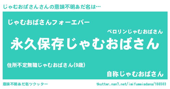 | 伝説のあだ名 | 『古文書に記された勇者じゃむおばさん』 |