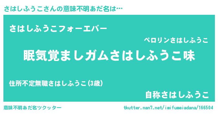 | 女子向けラノベタイトル風あだ名 | 『さはしふうこ恋絵巻』 |