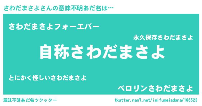 | 男性向けラノベタイトル風あだ名 | 『Re:さわだまさよから始める異世界生活』 |