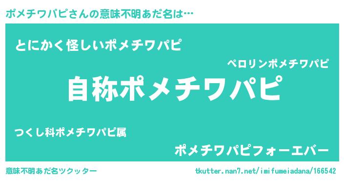 | ポケモン風あだ名 | 『ポメセウス』『ヒポメチワパピ』 |