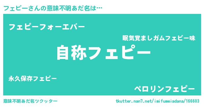| 女子向けラノベタイトル風あだ名 | 『フェピーなんてお断りですっ。』 |