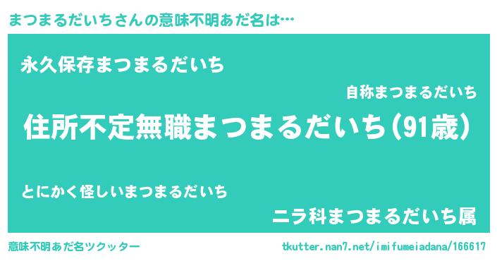 | ヘコむあだ名 | 『まつまるだいち(遠い目)』『まつお』 |