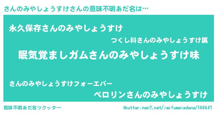 | ヘコむあだ名 | 『さんのみやしょうすけ(震え声)』 |