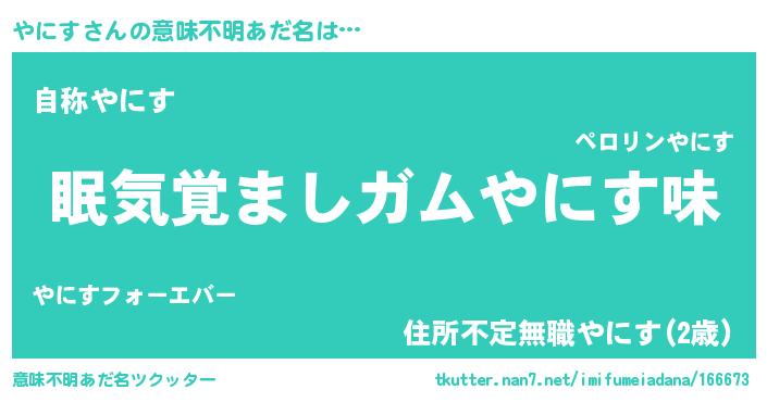 | ヘコむあだ名 | 『やににゅー』『レバニラ』 |
