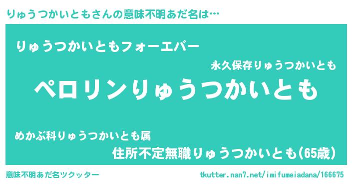 | ヘコむあだ名 | 『りゅふぇ~』『なまこ酢』『りゅを』 |