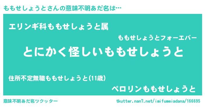| ポケモン風あだ名 | 『ヒモモセショウト』『モモゴンZ』 |