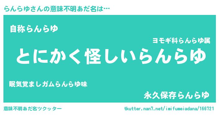 | ヘコむあだ名 | 『らんぷりん』『らんらゆ(笑)』 |