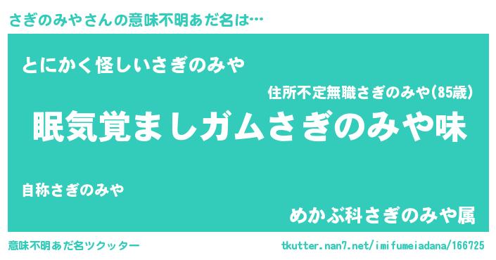 | ヘコむあだ名 | 『さぎお』『さぎのみや(震え声)』 |