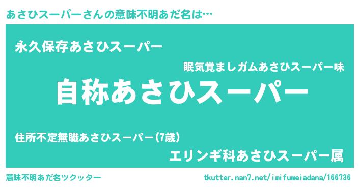 | ヒーロー風カッコイイあだ名 | 『ウルトラ戦士アサヒスーパー』 |