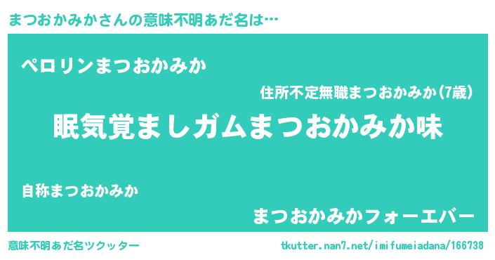 | 女子向けラノベタイトル風あだ名 | 『まつおかみか恋絵巻』 |