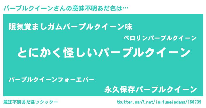 | 男性向けラノベタイトル風あだ名 | 『うちのパープルクイーンが世界を掌握している!』 |
