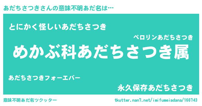 | 男性向けラノベタイトル風あだ名 | 『アダチサツキスレイヤー』 |