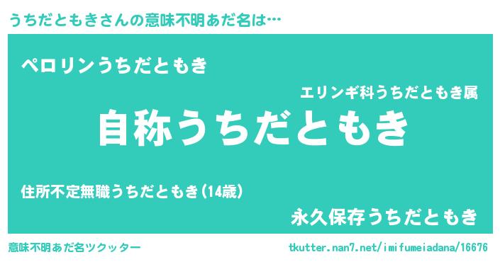 | ヘコむあだ名 | 『うちにゅー』『うちだともき(笑)』 |