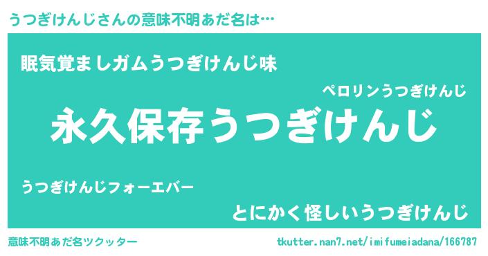 | 胡散臭い通販商品みたいなあだ名 | 『絶対に幸福をもたらす健康食品…その名も「うつぎけんじ」』 |