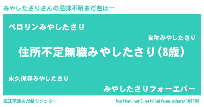 | 肩書あだ名 | 『みやしたさり教官』『みやしたさり社長』 |