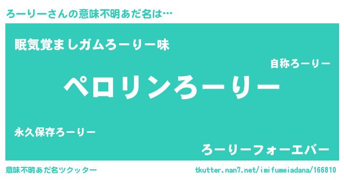 | 胡散臭い通販商品みたいなあだ名 | 『必ず成功するブレスレット…その名も「ろーりー」』 |