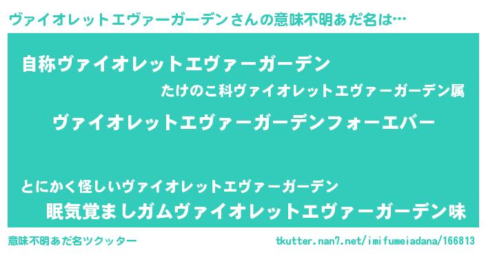 | 欧米人風あだ名 | 『ヴァイオレットエヴァーガーデンクリステル』 |