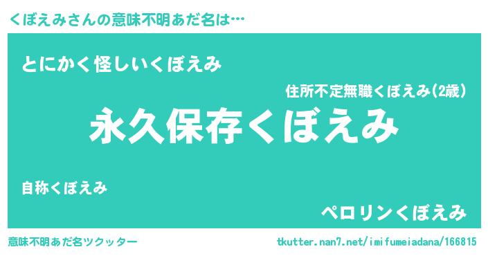 | 胡散臭い通販商品みたいなあだ名 | 『来世でも幸せになれる水素水…その名も「くぼえみ」』 |